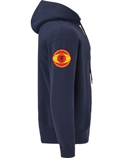 Prachtige Hoodie met The Dukes Rugby groot op de borst. En Dukes logo op de mouw.